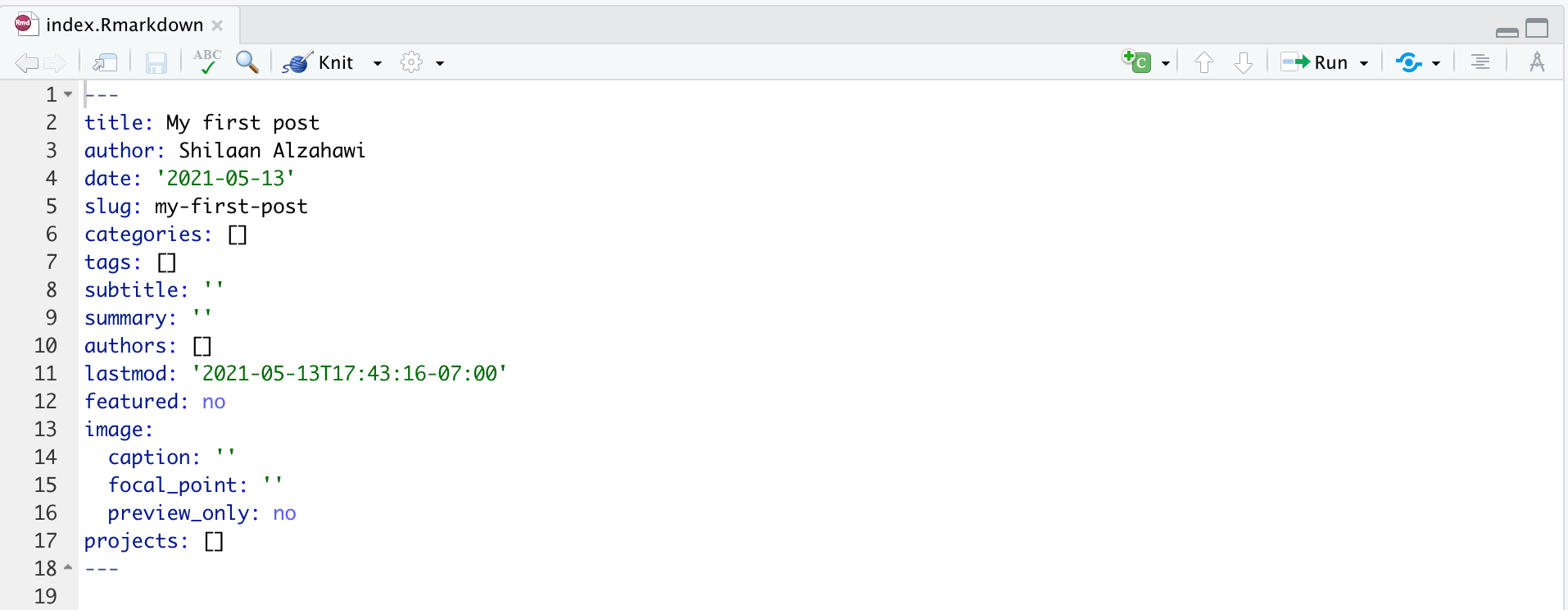 ) with today’s date and the title of your post. The crucial file is index.Rmarkdown